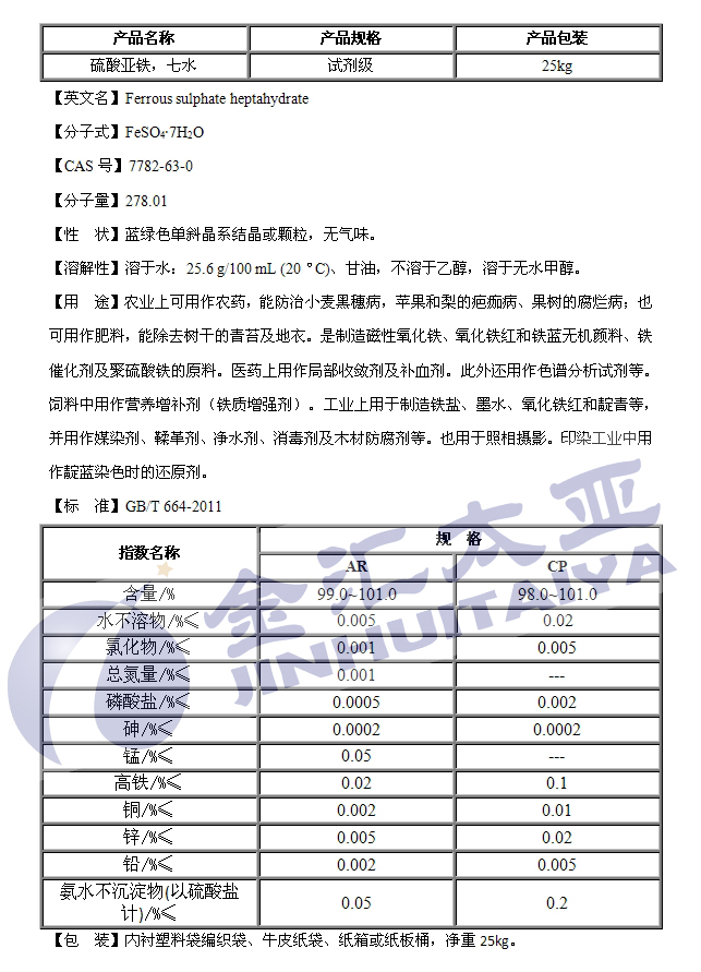 产品类别:硫酸盐---硫酸亚铁
