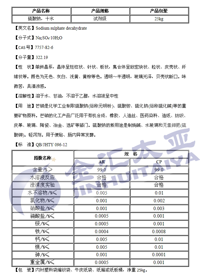 产品名称:十水硫酸钠